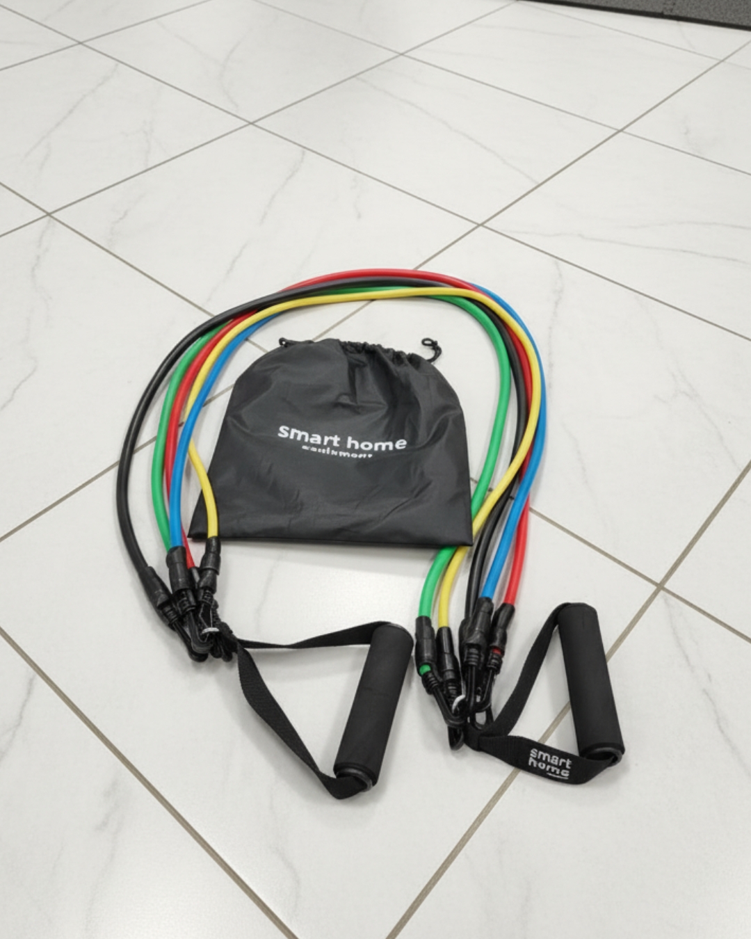 Bolsa de Transporte “Smart Home” Incluida: Todo el kit se guarda de forma compacta en una bolsa de cordón de nailon duradera , facilitando su transporte al gimnasio, oficina, parque o en viajes.