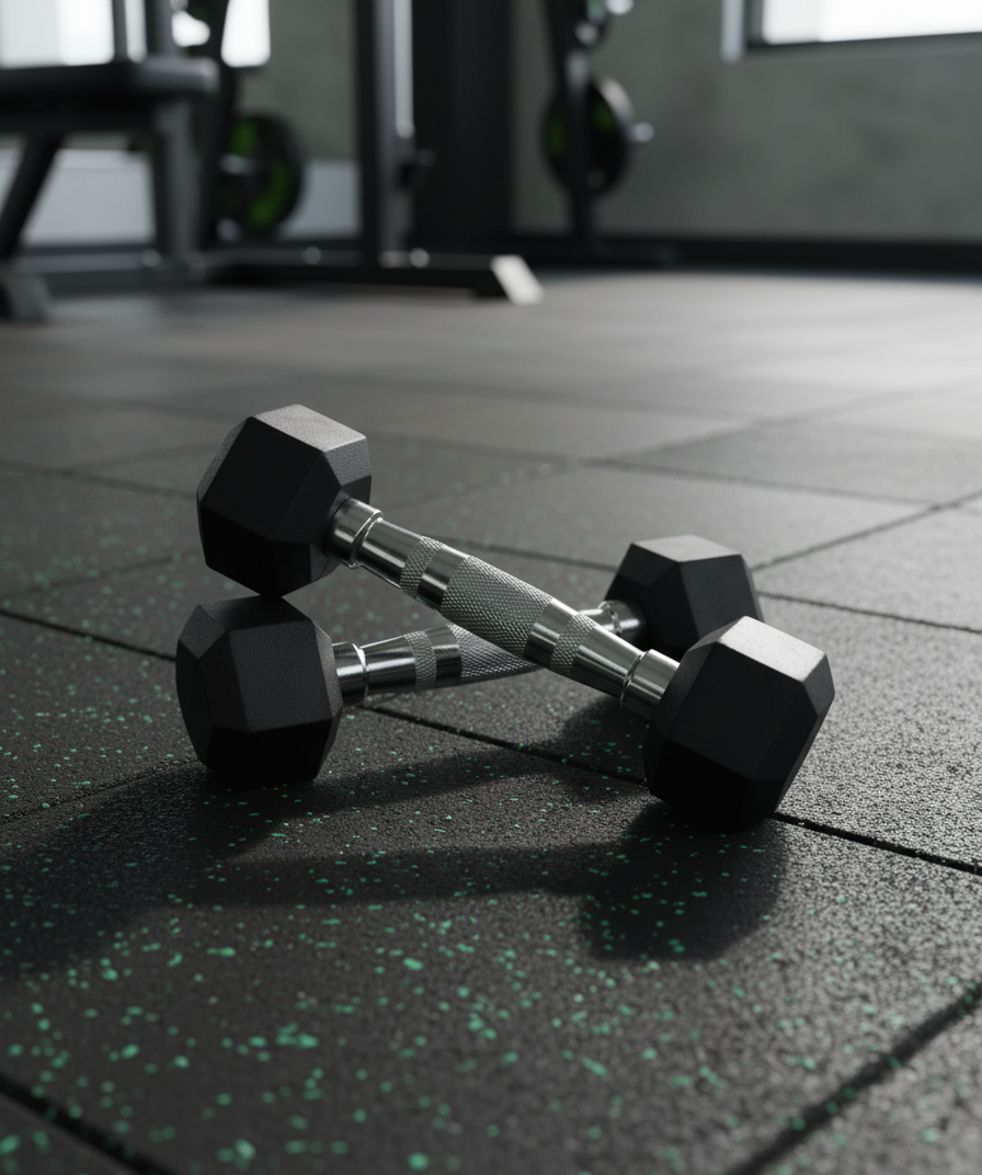 Recubrimiento de Caucho de Alta Calidad: El caucho duradero no solo protege tus pisos de posibles daños, sino que también minimiza el ruido, haciendo que tus entrenamientos sean más silenciosos y amigables.