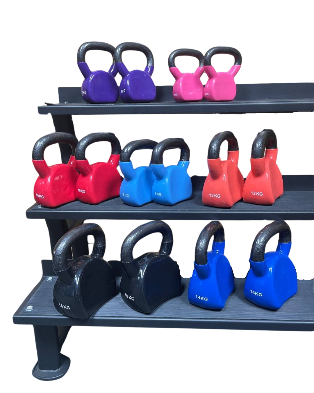 Rango de Peso Versátil y Progresivo: El set incluye un rango completo de pesos (desde 8 KG hasta 16 KG), perfectamente escalonado para permitir una progresión de entrenamiento fluida y efectiva para usuarios de todos los niveles de fitness.