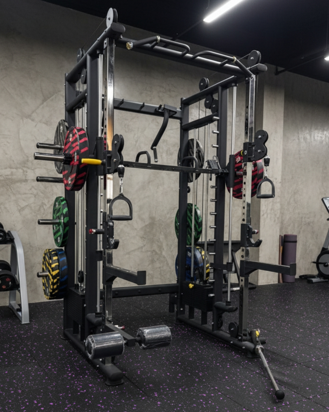 Construcción Robusta de Acero de Alto Calibre: Fabricada con perfiles de acero de grado comercial y acabados con pintura electrostática de alta durabilidad, esta Smith está construida para soportar el uso más intensivo en entornos comerciales o domésticos exigentes.