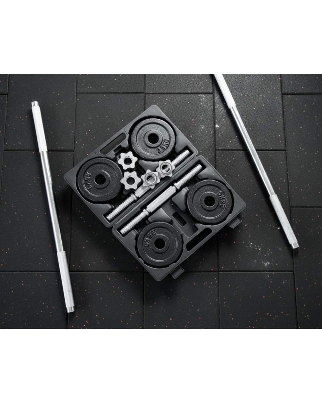 Diseño Antideslizante y Ergonómico: Las barras de mancuernas están diseñadas con un moleteado o agarre texturizado para una sujeción firme y cómoda, minimizando el riesgo de resbalones incluso con sudoración.